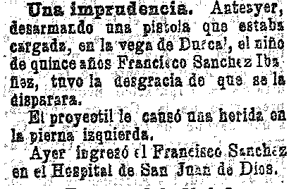 20 de octubre de 1903. Un niño se hiere con una pistola en
