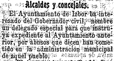 27 de octubre de 1903. Alcalde de Ízbor pide delegado para