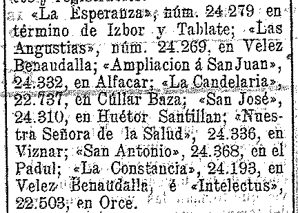 23 de octubre de 1903. Minas en Pinos del Valle