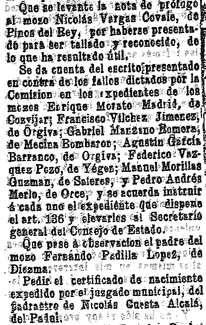 4 de octubre de 1903. Reclamaciones de quintas en Pinos del