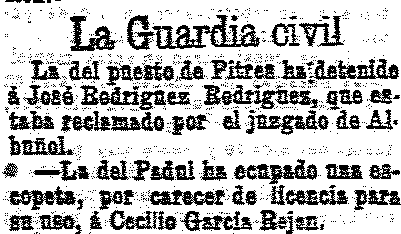 7 de octubre de 1903. Ocupación de escopeta en el Padul