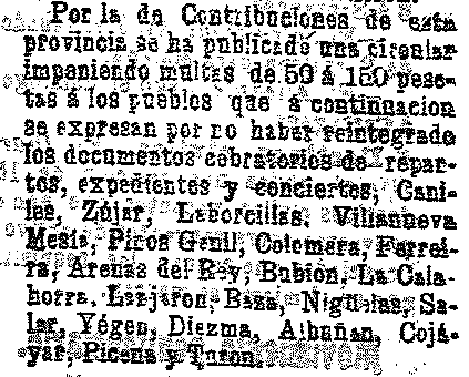 8 de octubre de 1903. Multados ayuntamientos de Lanjarón y