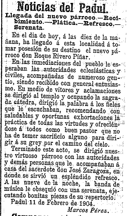 14 de febrero de 1904. Llega el nuevo párroco a Padul Don
