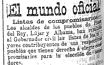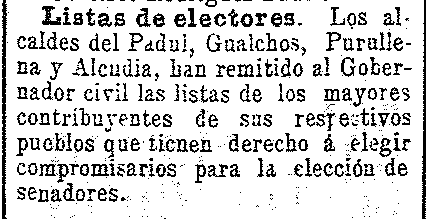 14 de febrero de 1904. Lista de compromisarios de Pinos del