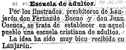 17 de febrero de 1904. Escuela de adultos en Lanjarón