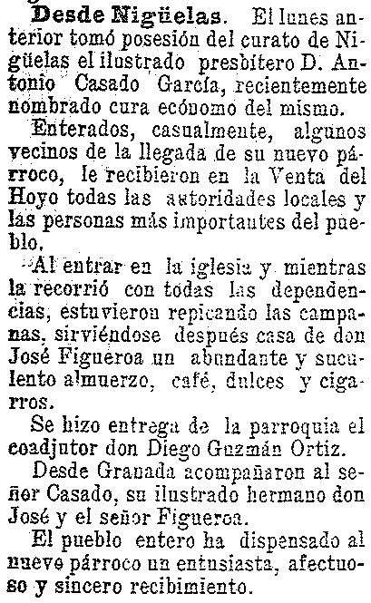 17 de febrero de 1904. El cura de Nígüelas Don Antonio Casado