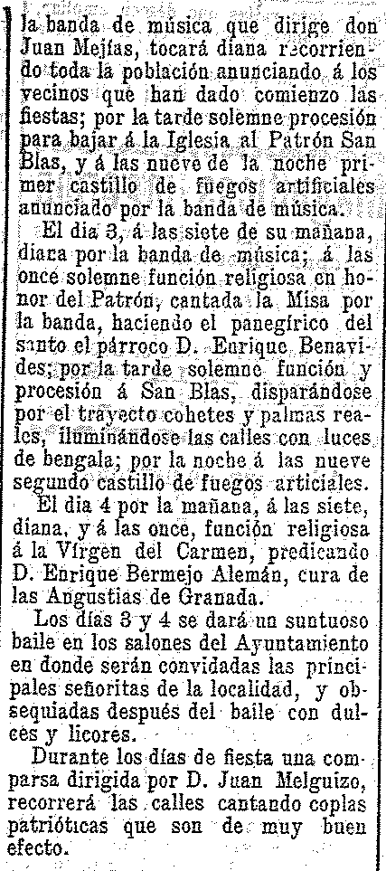1 de febrero de 1904. Fiestas en Dúrcal