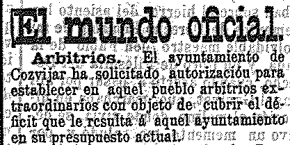 20 de febrero de 1904. Arbitrios extraordinarios en Cozvíjar