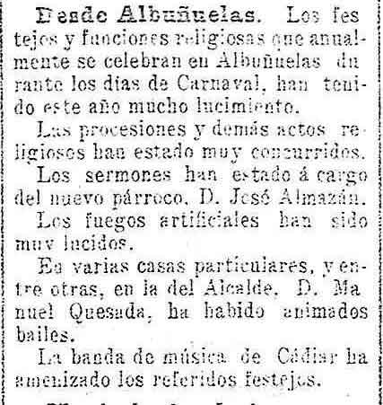 21 de febrero de 1904. Fiestas en Albuñuelas