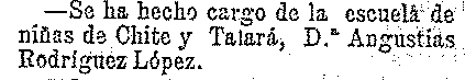 23 de febrero de 1904. Maestra de escuela de Chite Talará