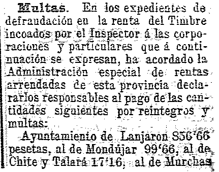 24 de febrero de 1904. Multas a Lanjarón, Mondújar, Chite y
