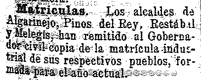 24 de febrero de 1904. Matrícula industrial de Pinos del Rey,