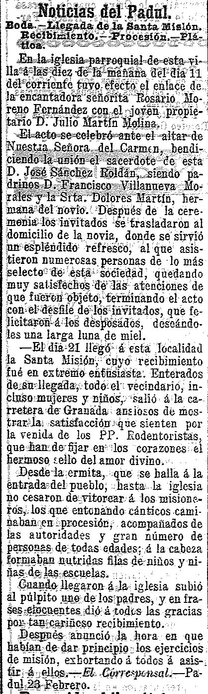 25 de febrero de 1904. Boda en el Padul. Llegada de la Santa