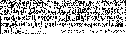 25 de febrero de 1904. Matrícula industrial de Cozvíjar