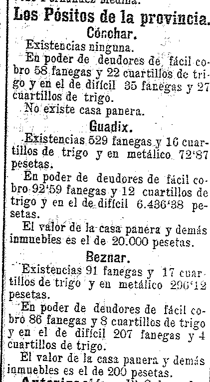26 de febrero de 1904. Pósitos de Cónchar y Béznar