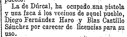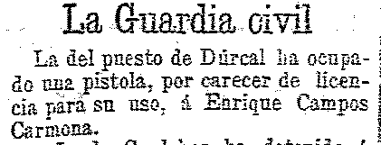 27 de febrero de 1904. Ocupada una pistola en Dúrcal
