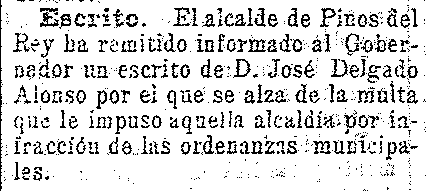 14 de febrero de 1904. Alcalde de Pinos del Rey