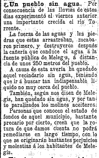 9 de febrero de 1904. La crecida del Río Torrente rompe los