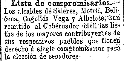 9 de febrero de 1904. Lista de compromisarios de Saleres