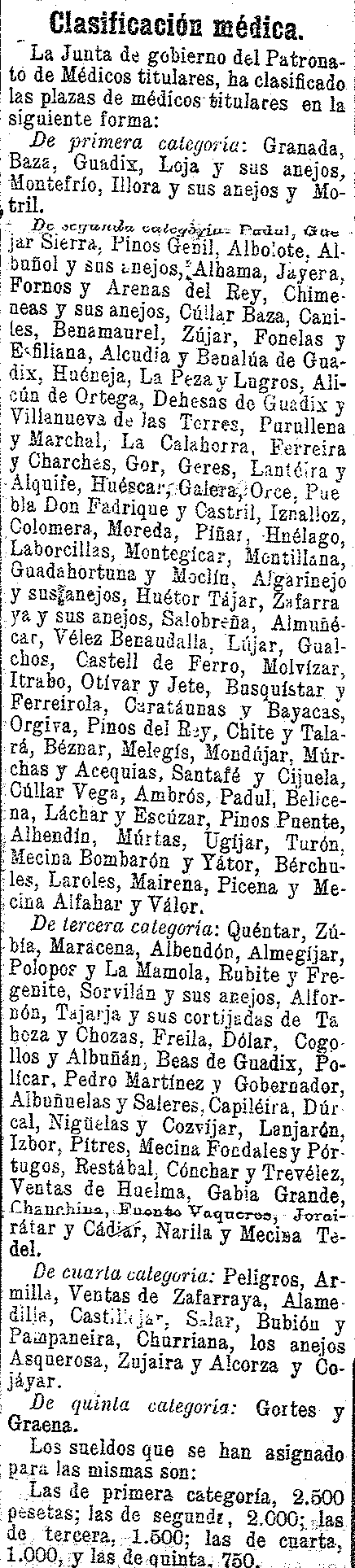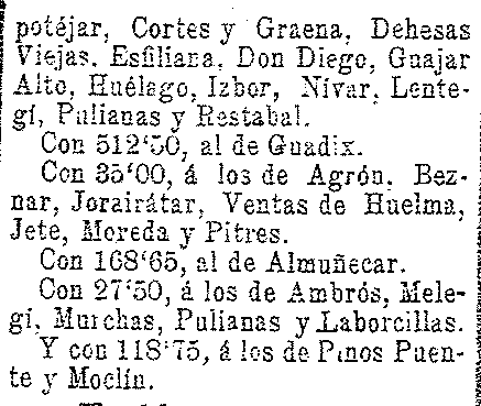 Segunda categoría: Padul, Pinos del Rey, Chite y Talará, Béznar, Melegís, Mondújar, Murchas y Acequias