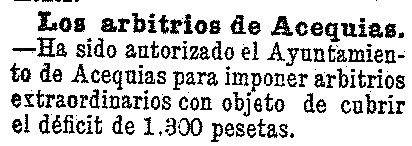 10 de junio de 1904. Arbitrios de Acequias