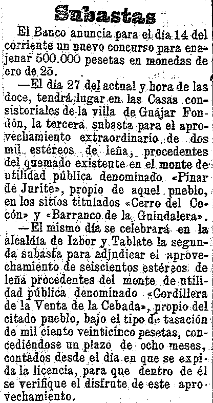11 de junio de 1904. Se subastan 700 estéreos de leńa en