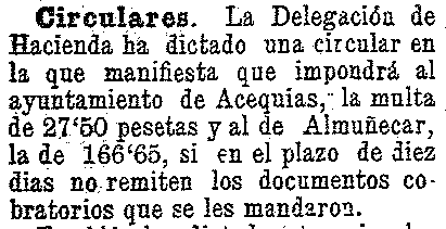 15 de junio de 1904. El ayuntamiento de Acequias multado