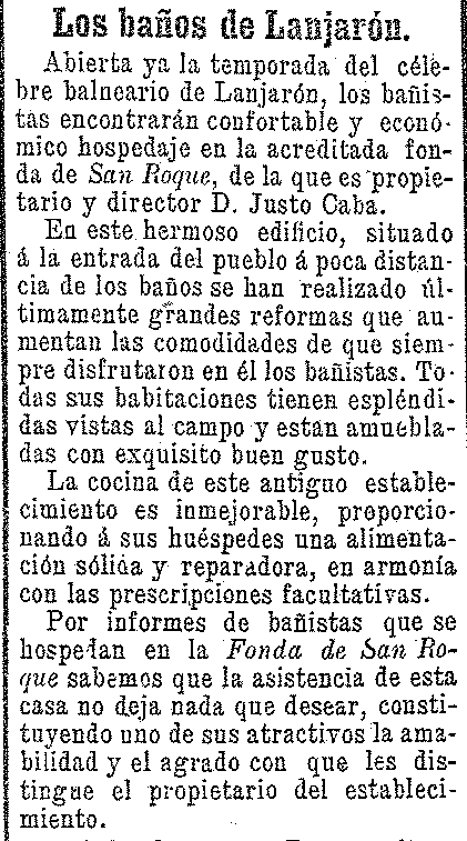 19 de junio de 1904. Abierta la temporada de bańos en Lanjarón