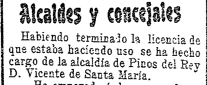 21 de junio de 1904. Alcalde de Pinos del Valle