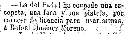 21 de junio de 1904. Ocupada una faca, una pistola y una escopeta en el Padul