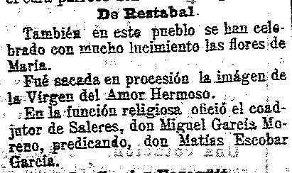 7 de junio de 1904. Noticias de Restábal. Procesión de la