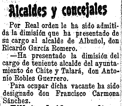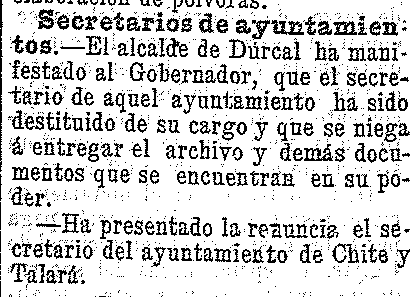 24 de mayo de 1904. Destituido el secretario de Dúrcal