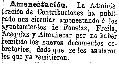 11 de mayo de 1904. Amonestación al ayuntamiento de Acequias