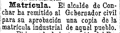 12 de mayo de 1904. Matrícula industrial de Cónchar