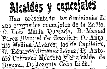 18 de mayo de 1904. Dimite concejal de Cozvíjar
