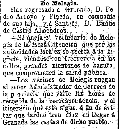 28 de mayo de 1904. Noticias desde Melegís. Se quejan de la