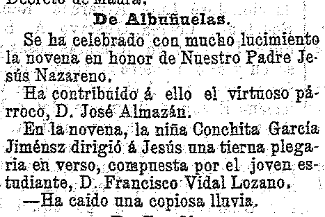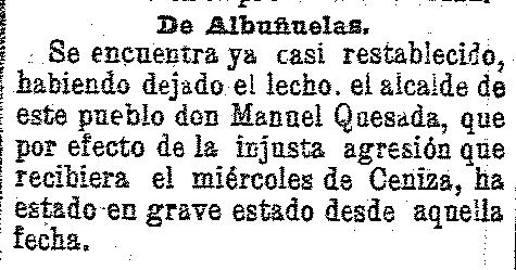 2 de abril de 1905. Se restablece el alcalde de Albuñuelas