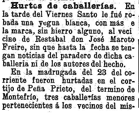 27 de abril de 1905. Robada una caballería a un vecino de Restábal