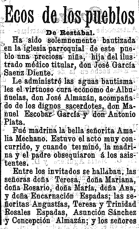5 de abril de 1905. Ha sido bautizada la hija del médico de