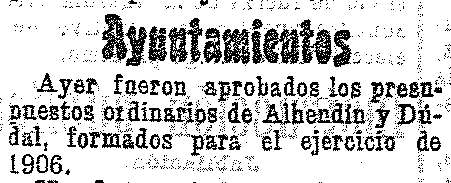 15 de diciembre de 1905. Presupuestos de Dúrcal