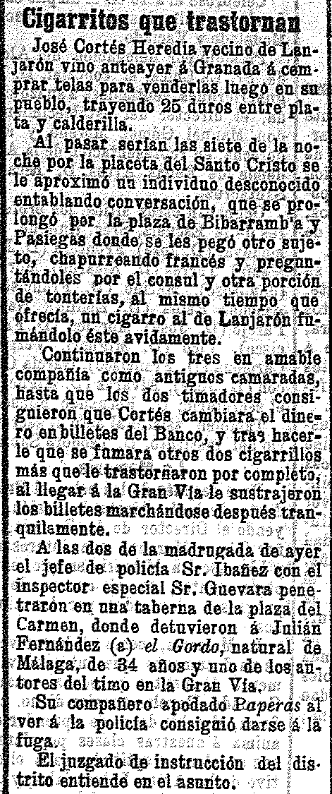 16 de diciembre de 1905. A un vecino de Lanjarón le dan unos