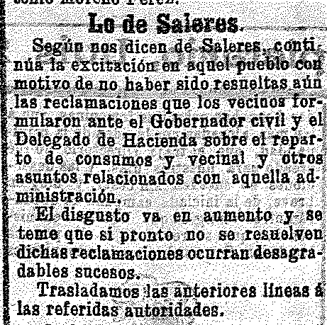 17 de diciembre de 1905. Sigue el malestar en Saleres por el