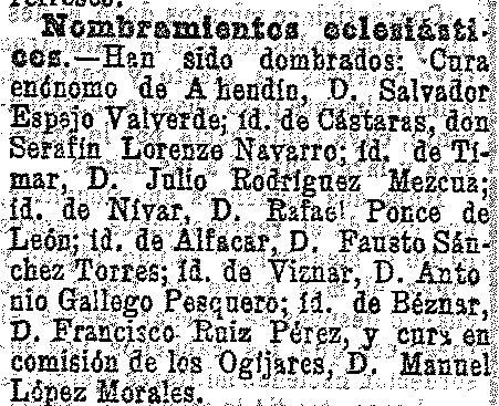 22 de diciembre de 1905. Se nombra cura de Béznar a D.