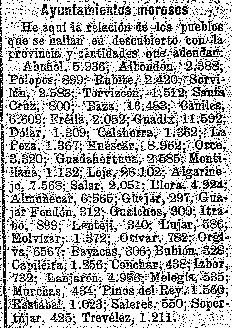 6 de diciembre de 1905. Ayuntamientos morosos: Cónchar,