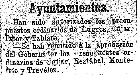 11 de enero de 1905. Presupuestos ordinarios de Cozvíjar