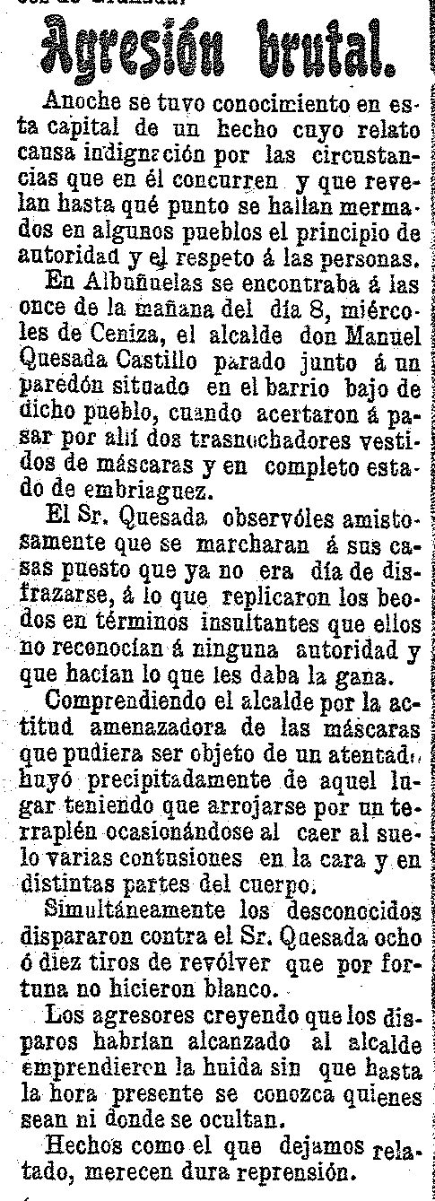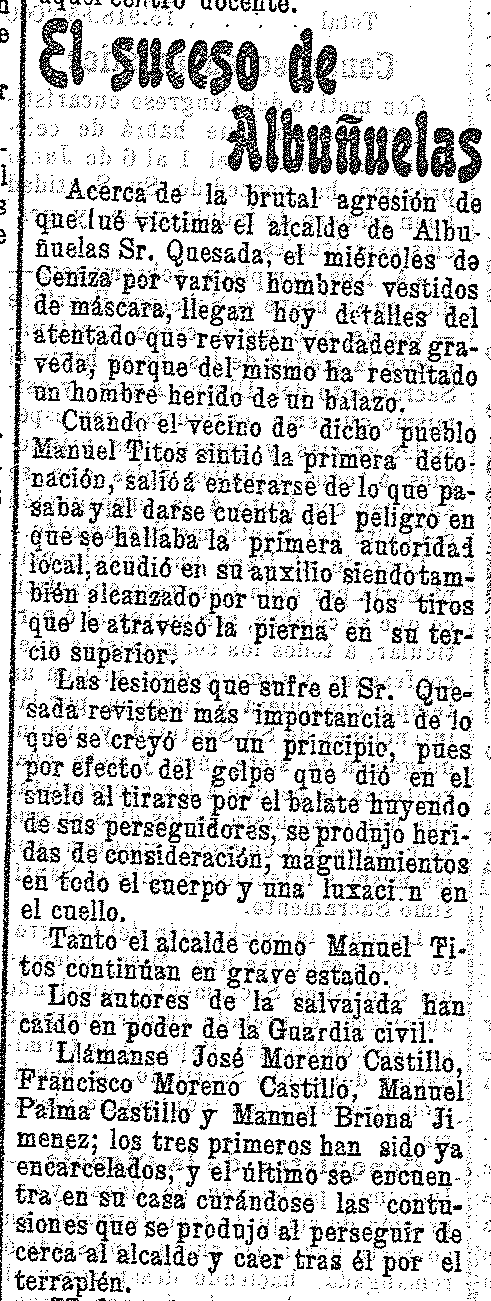 11 de marzo de 1905. Agresión brutal en Albuñuelas