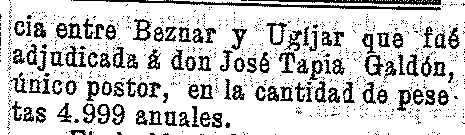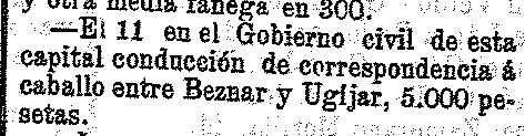 20 de marzo de 1905. Adjudicada la correspondencia entre Béznar y Ugijar