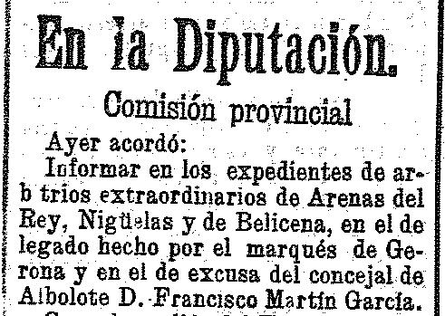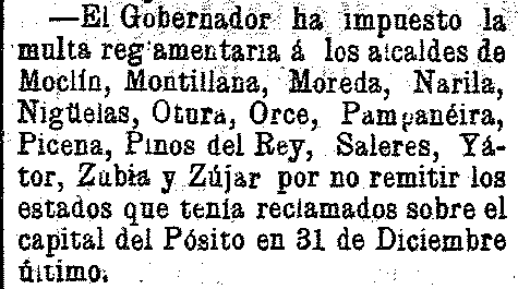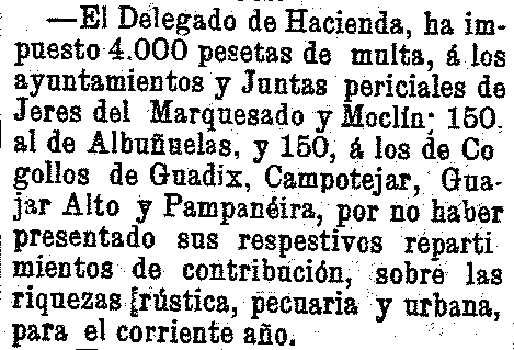 24 de marzo de 1905. Multados alcaldes de Nigüelas, Pinos del rey y Saleres