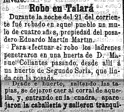 24 de marzo de 1905. Roban un mulo en Talará