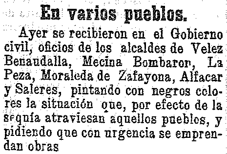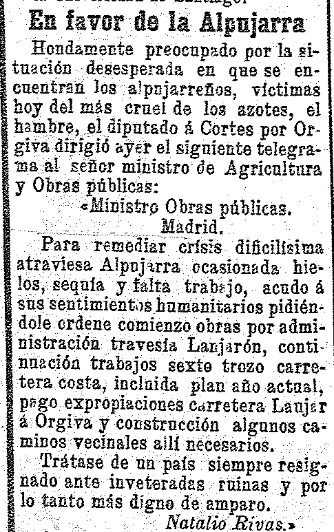 26 de marzo de 1905. La sequía agrava la situación de la Alpujarra. El diputado